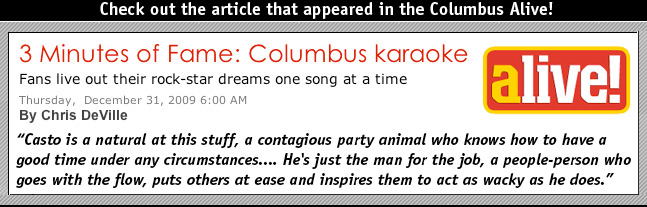 There is no denying that Karaoke has become a part of the unique culture of what this city is. Karaoke went from being on the sidelines to being a destination. Depending on where you go, you are as likely to see college kids seeing the newest hits as you are seeing retired folks crooning classics on any given night all around this city. Everyone seems to love karaoke- from people in their own bands who have toured nationally, to those who have never stepped on a stage outside of karaoke - can be found singing and making memories, week after week. Excesss would like to think that we have been a part of that change, of karaoke evolving from a novelty done in small back rooms, to being a vibrant night out, and a real part of the nightlife of this city. Over the years, there have been some great articles talking about the Columbus, Ohio karaoke culture, and we have been glad to be featured in most of those articles. We have also been nominated for and/or won various accolades and distinctions for best karaoke night over the years. We used to try and keep up with all the press and repost it here on our site- but it quickly got away from us. but please know we appreciate every article, every mention of our services and nights to a friends, and every vote we get in the various polls and papers. Here are some links to some of the old press archives we used to keep.